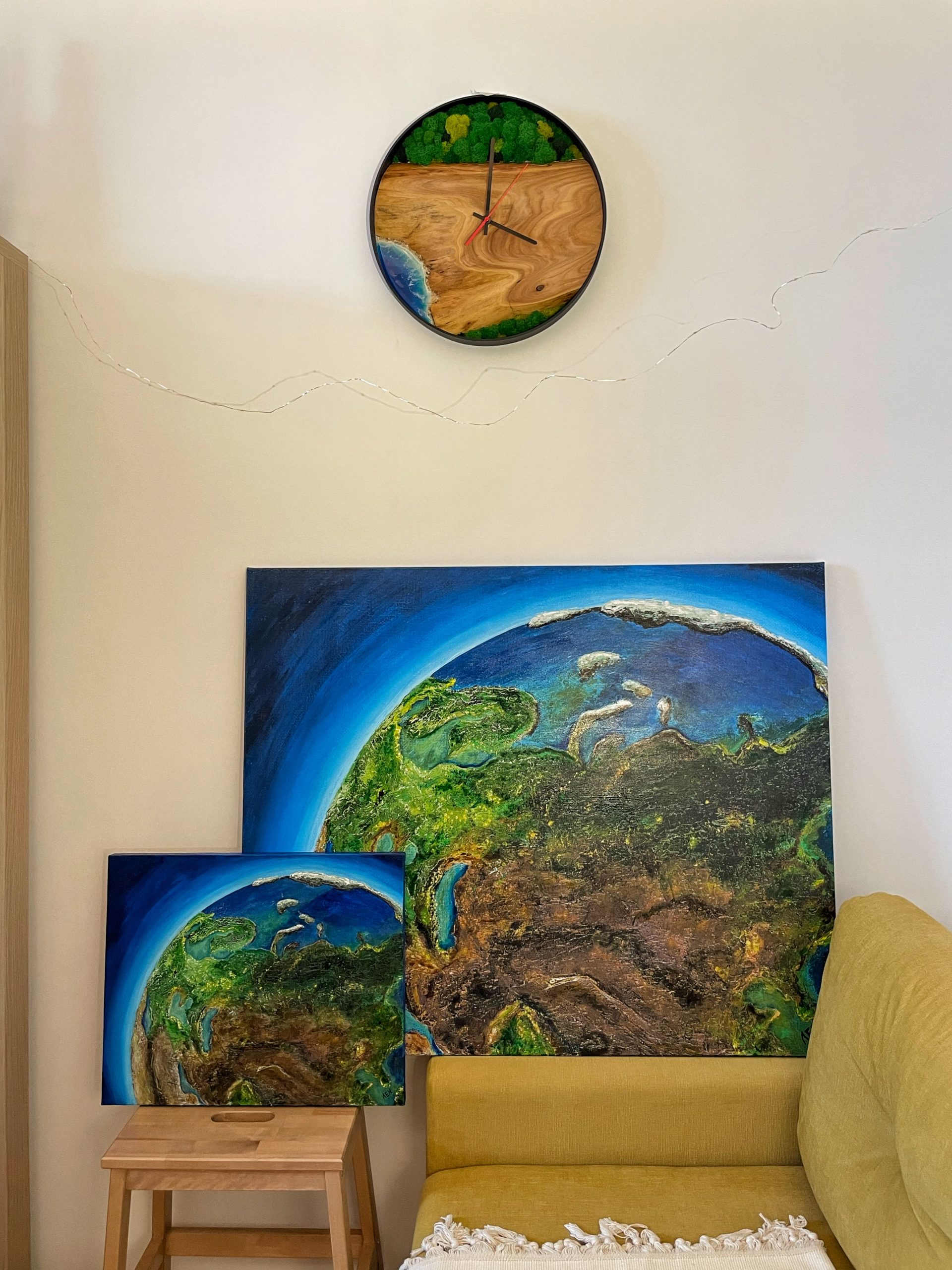 - Доступно изготовление высокого качества авторского принта на художественном холсте с применением техники жикле (авторские мазки краской на холсте) и покрытием лака для сохранности и яркости.
